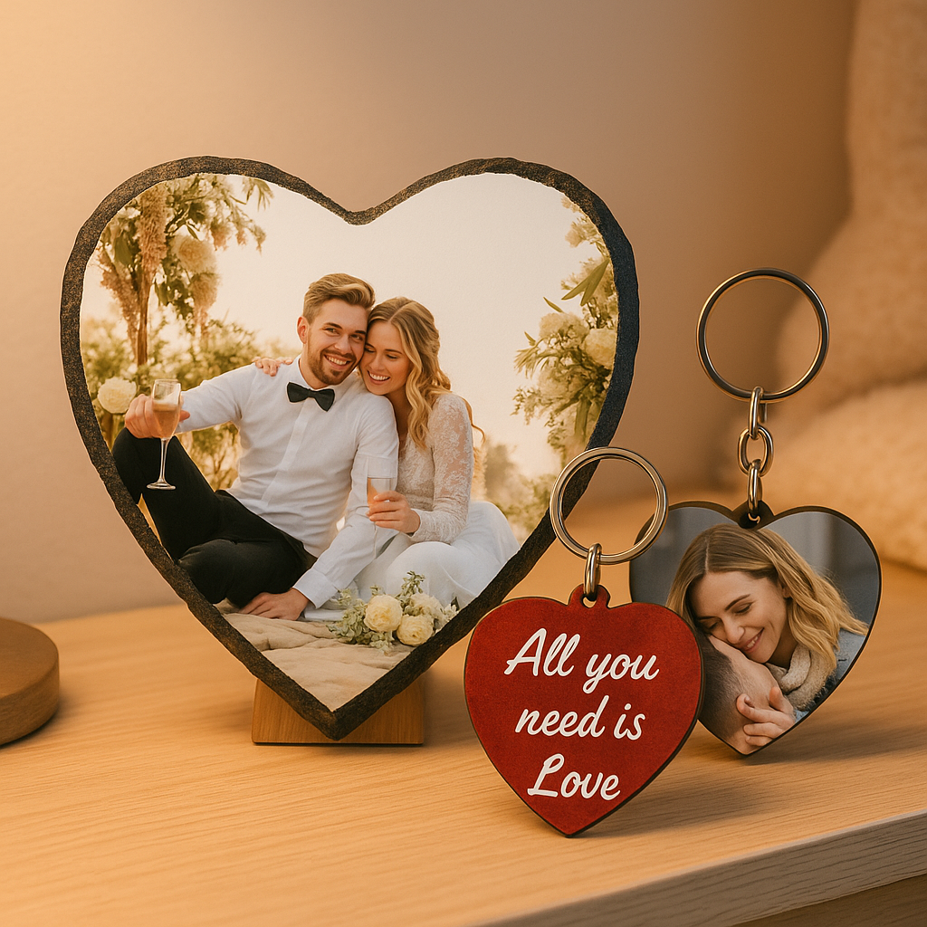 עשויים עץ, עם הדפסה איכותית משני הצדדים. אפשר להוסיף תמונה, שם או משפט קטן – כל אחד שונה אבל ביחד זה בול אתם ❤️